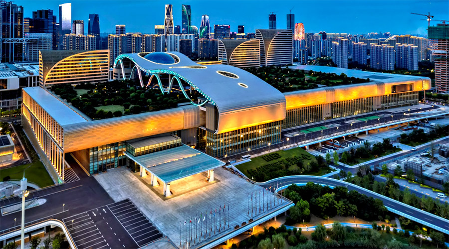 展覽中心面積9萬平方米,共10個展廳分布于三層,各展廳面積自7700平方米至10000平方米不等,滿足特種展覽、大型集會、體育休閑等不同規模及不同類型的展會需求。地下停車場可提供4000個車位。展覽中心致力于構造高端、高效、高質的展覽服務平臺,配套先進的硬件設施,細致卓越的定制化服務,能滿足不同規模及類型的展會同時辦展需求,實現高品質的形象布展。